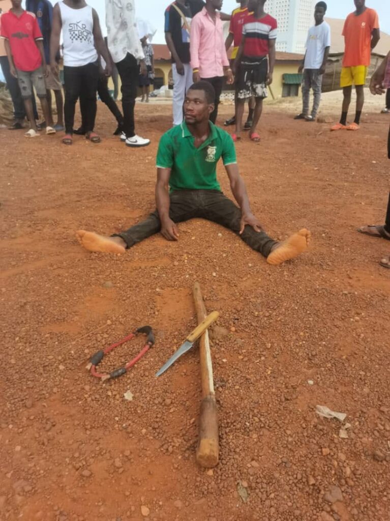 The items retrieved from him include a sharp knife, locally made catapult, and a pestle which he used to attack his victims It was later gathered, that the two Police officers whose names are not yet known were detailed to respond to a distress call from worshipers from the Anglican Church.