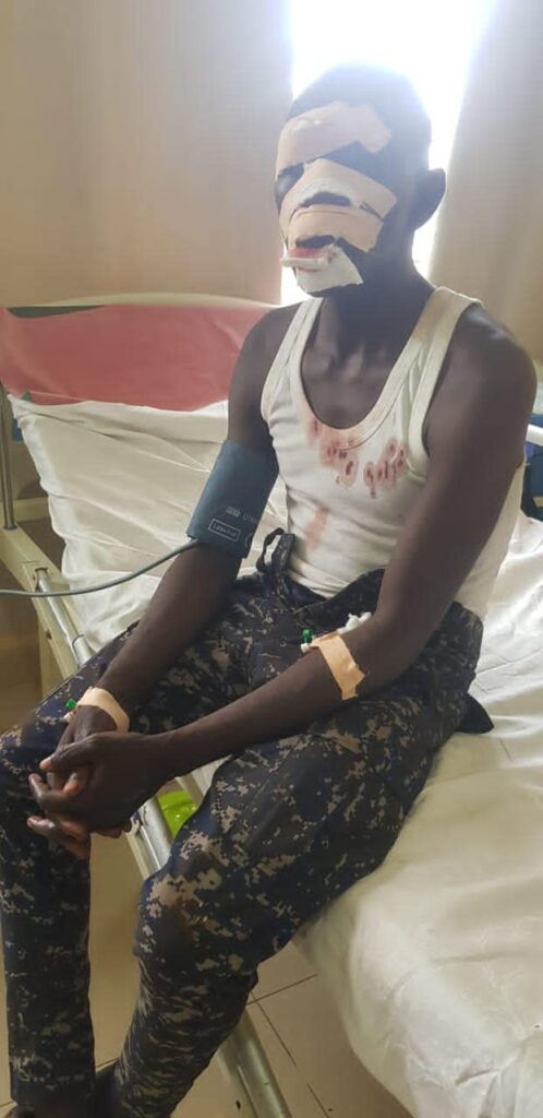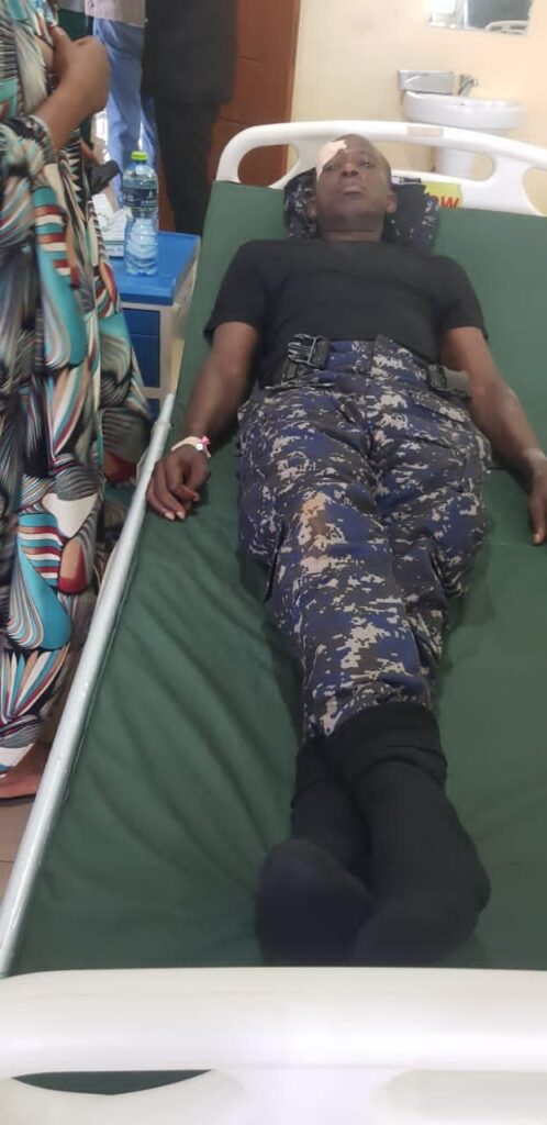 One of the attacked police officer on sick bed at Wiawso Municipal hospital
