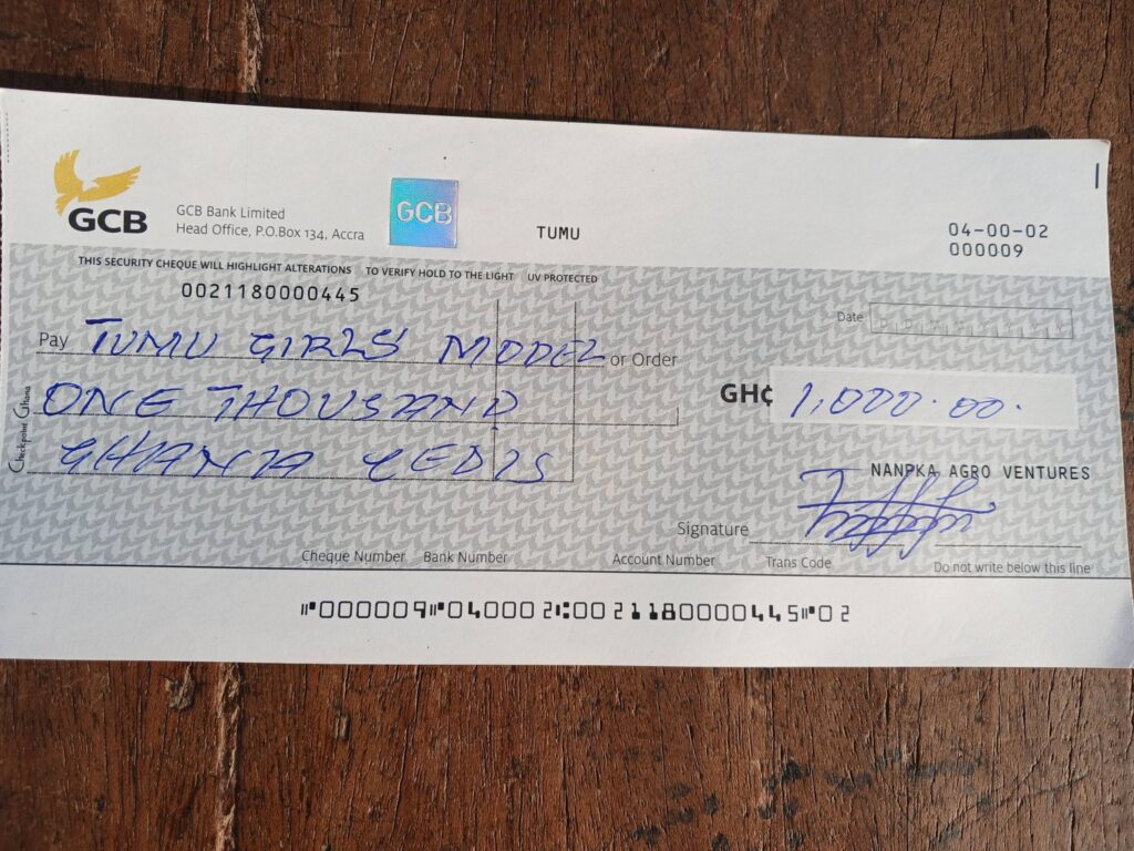 Mr Alhaji Nankpa Jibirilu also donated one thousand Ghana cedis (GH₵1,000.00) to fix the school’s broken-down borehole to ensure the availability of portable water in the school. The school only source of water has not been functional for some time now, presenting a challenge for students and staff due to the school’s remote location. Understanding this urgency, Mr. Alhaji Nankpa Jibiliru donated cheque of GH₵1,000.00 to repair the borehole.