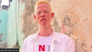 Referring to the stigma he faces in Somalia because he has albinism, 25 year-old...